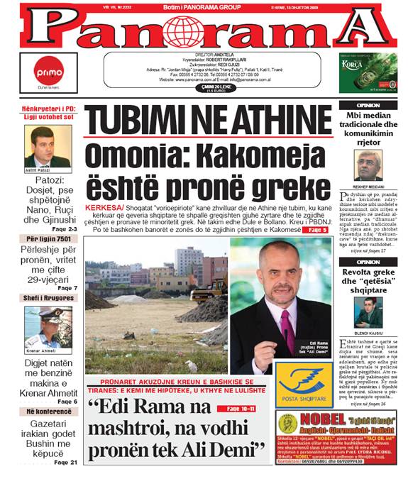 Με αυτόν τον τίτλο η αλβανική εφημερίδα Panorama φιλοξενεί αποκλειστικές δηλώσεις του Γ.Κουμουτσάκου από τις Βρυξέλλες .